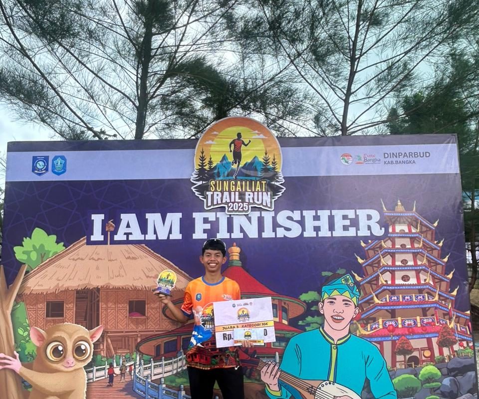 PEMALI, SMANSALI POS – Atlet muda SMAN 1 Pemali kembali menorehkan prestasi membanggakan dan menambah banyaknya deretan kemenangan yang sudah diraih sepanjang tahun ini. Ahmad Yahya Toure sang atlet kebanggaan sekolah meraih juara 3 pada Sungailiat Trail Run 2025(10K) tingkat umum yang diadakan di Exotic Matras, Sungailiat pada Sabtu (15/11/2025). Acara ini merupakan bagian dari rangkaian kegiatan besar Pekan Ekonomi Kreatif Kebudayaan dan Kesenian (Paksian).